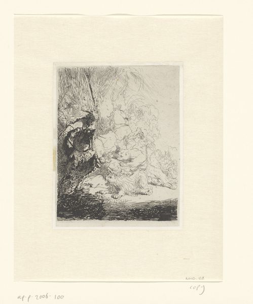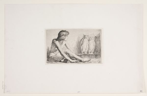 Giovanni Battista Tiepolo created this etching, titled "Filosoffen", in the 18th century. It depicts a philosopher absorbed in a book, seated by a tree, evoking a sense of contemplative isolation. The image creates meaning through the cultural reference to the solitary scholar, a figure admired during the Enlightenment in Europe, particularly in Italy. Tiepolo was working in Venice, during a period of intense intellectual ferment, when literacy was rising and new ideas were being discussed in the public sphere. The philosopher is shown in a natural setting, perhaps alluding to the idea of the "noble savage", a concept that challenged the established social norms of the time. To understand this work better, we can consult historical records about the role of intellectuals in 18th-century Venice, the history of the book, and the rise of literacy. The meaning of this image is contingent on its social and institutional context, an example of how historians can illuminate our understanding of art.