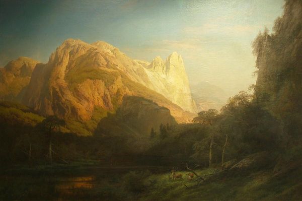 Albert Bierstadt painted 'The Sierras near Lake Tahoe', with oil on paper, during a period when the American West was both a physical frontier and a symbolic space for national identity. Bierstadt, a German-American artist, capitalized on the era's fascination with manifest destiny, crafting landscapes that evoke the sublime. But, let’s be clear, these images were not neutral; they actively promoted settlement and resource extraction, often obscuring the presence and rights of Native peoples. Though beautiful, Bierstadt’s vision leaves a complicated legacy of ecological transformation and cultural erasure. Consider the emotional impact of this scene. Does the panoramic vista inspire awe, or does it prompt a more critical reflection on the stories we tell ourselves about progress and belonging? These kinds of landscape paintings were more than just pretty pictures, they helped to shape a nation’s self-image, even as they glossed over uncomfortable truths.
