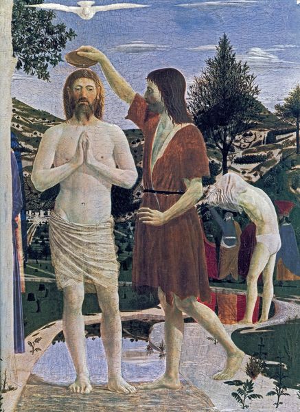 Painted by Piero della Francesca, likely in the 1460s, "St. Sebastian and John the Baptist" presents two iconic figures rendered with a clarity that defines Renaissance art. The painting subtly blends the sacred with the everyday. It asks us to think about the role of religious icons in shaping identities, especially in a society where faith and public life were deeply intertwined. The serene androgyny of St. Sebastian, pierced by arrows, stands in contrast to John the Baptist, cloaked in red robes. It subtly challenges conventional ideas about gender, strength, and suffering. The contrast in their representation is palpable. Sebastian embodies a passive acceptance of his fate, while John stands as a beacon of moral authority. Francesca invites us to reflect on the diverse ways individuals navigate faith, power, and their own place within the moral and social structures of their time. How do we reconcile these different models of virtue, and what does it mean to embody them in our own lives?