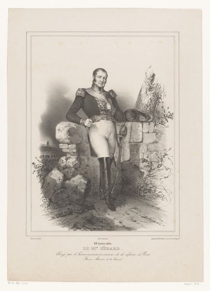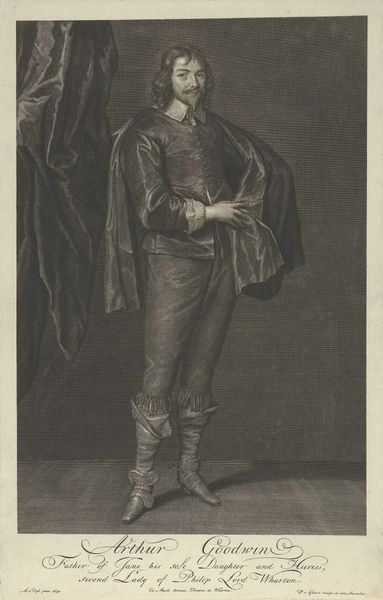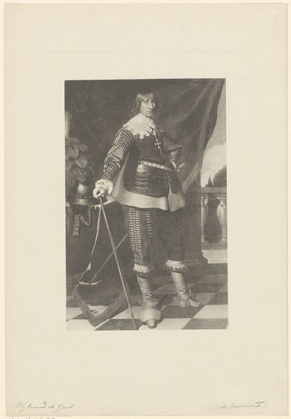 Giuseppe Longhi created this portrait of Eugène de Beauharnais using engraving, a process reflecting the period’s interest in precision and duplication. Longhi was working in the late 18th and early 19th centuries, a time of significant political upheaval in Europe, marked by the rise and fall of Napoleon. Here, Eugène, Napoleon’s stepson and a key figure in his empire, is depicted in a manner that blends aristocratic elegance with military authority. His elaborate attire and the classical backdrop speak to a desire to legitimize Napoleonic power by linking it to historical empires. Yet, Eugène’s somewhat softer features and poised stance hint at the constructed nature of identity and power. The detailed rendering of his garments, juxtaposed with his bare legs, creates an interesting tension between vulnerability and dominance, embodying the complex negotiations of identity during this revolutionary era. This portrait invites us to consider how power is performed and perceived. It's an intimate yet formal study of a man navigating a world in transition.
