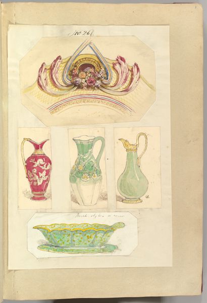 Alfred Henry Forrester rendered these designs for silverware using pen, ink, and watercolor in the 19th century. The techniques used are traditional to the fine arts, but the intended result was designs for mass production. The drawings are highly detailed. They show a range of forms and decorative treatments. Forrester was exploring how his designs might translate into tangible objects through the craftsmanship of silversmiths. The material qualities of silver, its luster, malleability, and capacity to hold intricate details, all come to mind when viewing these drawings. These drawings are more than just preparatory sketches. They represent an intersection of artistic vision and industrial manufacturing. They point to the increasingly blurred line between art and design during the Industrial Revolution, and raise questions about the role of the artist within an expanding capitalist system. They invite us to consider the labour involved in both the design and the potential production of such luxury goods.