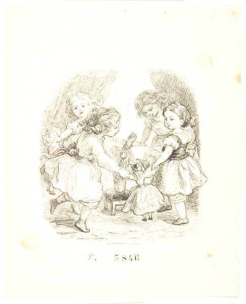 Lorenz Frølich created this print called 'Lili formaner dukken', whose date is unknown, with pen and ink. Frølich, who lived from 1820 to 1908, came of age during a time of significant social change in Europe, including evolving ideas about childhood and gender roles. Here we see a domestic scene where a little girl is seemingly reprimanding her doll. The image can be interpreted as a reflection of the societal expectations placed on young girls. They were often groomed from a young age to become caregivers and mothers. However, there's also a tension in this representation. The girl, in her act of scolding the doll, could be seen as subverting traditional expectations, taking on a role of authority and asserting her agency in a way that was not typically encouraged. The tenderness and gravity with which the child approaches her doll invites us to consider the complex interplay between innocence, imitation, and the internalization of societal norms.