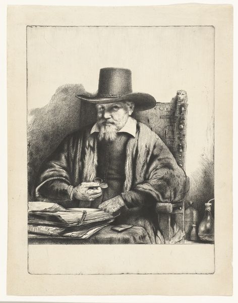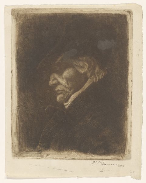 Wilhelm Leibl created this etching, *Old Man with a Walking Stick*, during the second half of the 19th century. Leibl was a German realist painter, printmaker, and etcher. During the period in which Leibl was active, German art began to shift away from idealized depictions of heroism and romanticism, and toward portraits that emphasized the realities of everyday life, particularly among the working class. Leibl was committed to representing individuals in a way that honored their dignity and experience. This subject is shown with a somber expression, his hands clasped over the top of a simple walking stick. The man’s worn features and modest clothing suggest a life of hardship. Leibl’s choice to focus on the elderly working class reflects a broader interest in representing the experiences of those often overlooked. The artist’s commitment to realism, while innovative, often led to conflict with the art establishment which preferred more romantic, heroic depictions. This etching is a reminder of the importance of seeing and valuing the lives of all members of society.