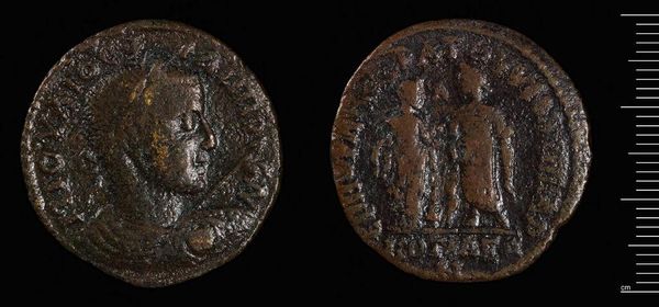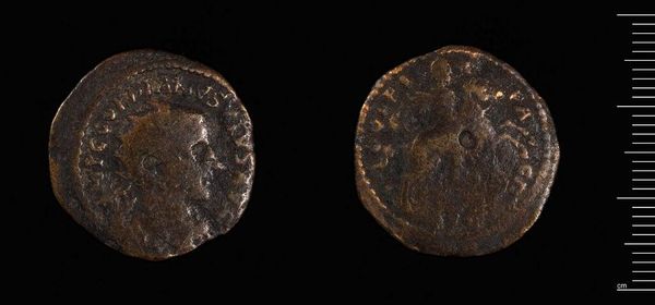 Curator: This is a coin from Antioch, issued during the reign of Elagabalus. The coin, weighing 13.65 grams, features the emperor's profile. Editor: It looks worn, almost ghostly. I’m immediately struck by the contrast between the ambition of empire and the brutal reality of its material trace. Curator: Precisely! The emperor's visage, though faded, projects authority—laurel wreath and all. On the reverse, we see an eagle, a common symbol of Roman power. Editor: The eagle, though, is far from majestic here. It appears burdened, weighed down perhaps by the very empire it's supposed to represent. An apt symbol, considering Elagabalus’s controversial reign. Curator: A potent reminder that symbols are rarely straightforward. They carry layers of cultural and psychological weight that shift over time. Editor: Absolutely. This coin isn't just currency; it's a testament to power, its complexities, and its inevitable decay. Curator: Indeed, a small object holding a vast history. Editor: A history of ambition, resistance, and ultimately, change.
