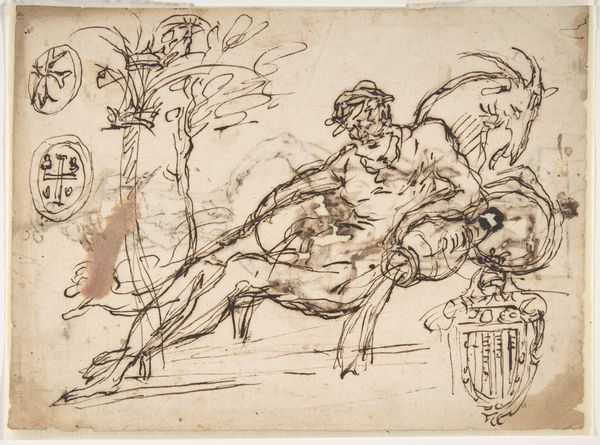This pen and brown ink drawing depicts the Holy Family with St. John the Baptist. Its origin is currently unknown. We can consider how the image creates meaning through visual codes and cultural references. Depictions of the Holy Family were common in Europe, especially in Italy, from the 14th through 17th centuries. The Catholic Church was a powerful institution, and religious imagery served multiple purposes. On one hand, it reinforced religious doctrine, on the other hand, it also served as propaganda, shaping and manipulating the beliefs of the population. Artists were often commissioned by the Church or wealthy patrons to produce these works, reflecting the social and economic structures of the time. To understand the drawing better, art historians can research the patronage system, religious art, and social history of the time. Art's meaning is contingent on its social and institutional context, and historical research helps us interpret and appreciate it more fully.