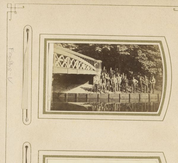 Editor: So, this is Robert Frank’s "Glider, Zurich", a gelatin-silver print he created sometime between 1942 and 1945. The stark black and white tones give it an almost nostalgic, documentary feel. It seems to capture a specific moment, a collective gaze focused upwards, and that single wing jutting into the sky. I'm curious, what is your perspective on this, where does your eye go, what do you make of this moment he has captured? Curator: It's funny you say nostalgia, because it does tap into something rather whimsical, almost hopeful, wouldn’t you say? But look closer – those people, that glider, a makeshift apparatus against the vast sky… to me it speaks to the war years, doesn't it? It’s the era of dreams struggling to take flight amidst hardship, a society caught between the earth and sky. Is that soaring wing promise, or futility? Editor: I see what you mean. The "makeshift apparatus" aspect certainly rings true and shifts the mood. Curator: And what about the tilted perspective, off-kilter, the somewhat casual arrangement of figures, with the formal constraint of a sharp linear wing. It’s Frank, isn't it? Already tinkering with perspective, composition... Editor: Absolutely! It’s not a polished heroic image, it’s much more raw and in the moment. I now read that tilted perspective, coupled with that bold linearity as a potential nod towards a burgeoning modernist or abstract aesthetic in contrast with those human faces that draw us towards an immediate experience in this time. Curator: Precisely. Art doesn't happen in a vacuum, does it? Do you see how it now speaks of war, flight, art, all intertwined. I find the experience with Robert Frank so moving because he is never heavy-handed, but instead relies on a kind of simple observation that is complex and heavy with its message. He offers a sense of realism and truth in all of his images. Editor: It's amazing how much is packed into a seemingly simple photograph. Thanks for that!