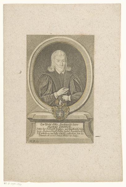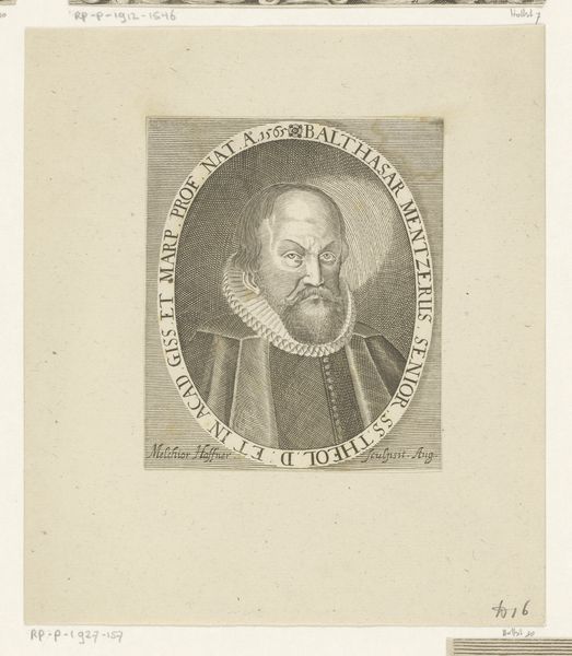 This is a portrait of Georg Weinrich, made by Johann Philipp Thelott using etching and engraving. The image comes to life through the skilled manipulation of metal plates. The artist would have painstakingly carved lines into a metal surface, inking it, and then using a press to transfer the image onto paper. The etched lines create depth and texture, capturing the details of Weinrich's face, his elaborate ruff, and fur-lined coat. The very act of repetitive mark-making speaks to the labor involved in producing such an image, which would have been made for distribution. Consider how this contrasts with the subject’s social standing. As a professor and doctor of theology, Weinrich belonged to an elite class, but the print medium allowed his image to circulate more widely, connecting him to a broader audience. Ultimately, this print is a testament to the power of reproductive media and the skill of the printmaker, blurring boundaries between high art and functional craft.