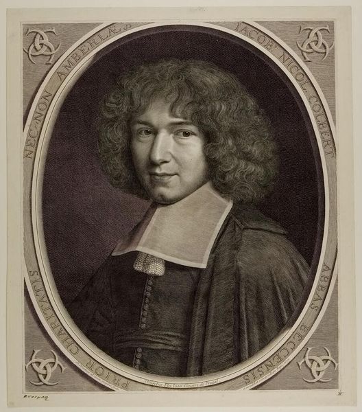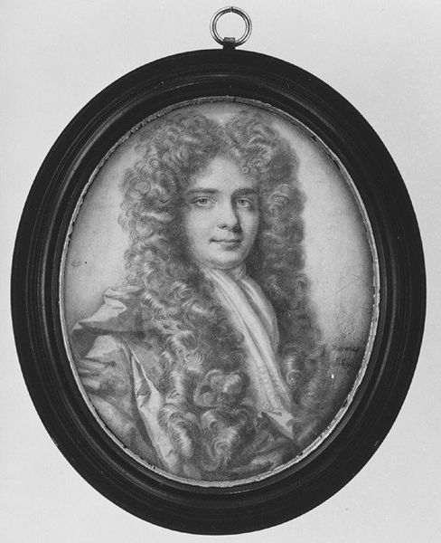 Editor: This is Sir Godfrey Kneller's portrait of Thomas Coke, 1st Earl of Leicester. I'm immediately struck by the contrast between the soft, almost cloud-like wig and the sharp, defined lines of his jacket. What compositional elements stand out to you? Curator: The oval format, the subtle gradations of tone, and the interplay of textures are meticulously balanced. Note how the painterly quality of the wig contrasts with the smoother execution of the face, drawing attention to the sitter's gaze. The light seems to emanate from within the subject himself. Editor: That's a great point. Thanks for highlighting the interplay between textures and light! Curator: My pleasure. The harmony of form and line is truly remarkable.
