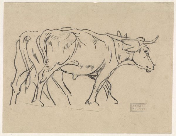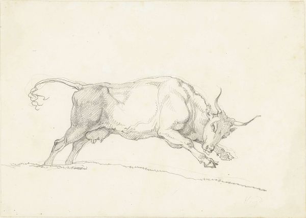 Josephus Augustus Knip created these three studies of Italian cattle with pencil on paper. The composition is simple, with three studies arranged on the page to maximize space and utility. Knip’s use of line and shading transforms simple sketches into studies that explore the form and texture of these animals. These studies engage with the broader tradition of animal portraiture, and with the use of preliminary sketches to prepare for more complex compositions. The variations in perspective offer an almost sculptural understanding, emphasizing volume and mass through the subtleties of light and shadow. Each drawing offers a different perspective, suggesting a deep investment in understanding and representing the animals naturalistically. Knip’s work here is an example of how the formal elements of drawing can converge to produce both an aesthetic and an intellectual engagement with the subject.