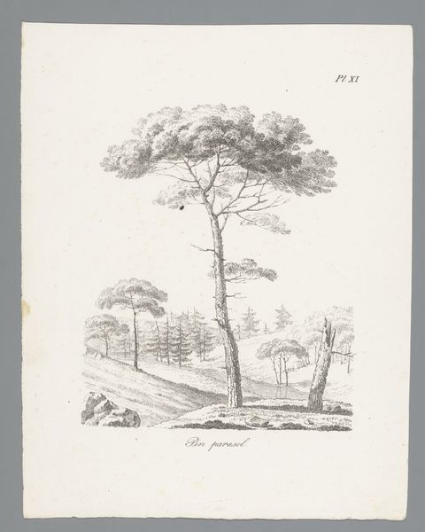 Curator: This is "Tree on the Bank of a River" by Max Josef Wagenbauer, rendered in pencil in 1823. A quiet study of nature, wouldn't you say? Editor: Quiet, yes, almost melancholic. Look at the lean of that dominant tree, almost as if weary, bending towards the water. The overall grey tone of the pencil strokes adds to the mood. What’s striking to me, though, is the precision of line in its creation. Curator: Precisely. Notice how Wagenbauer masterfully employs line—thin and delicate to build depth, to suggest the play of light on water. There's a tension, a harmony, in the contrasts between the foreground tree and the receding forms, a visual dialectic. Editor: I agree, there's skill evident. It’s intriguing to consider what type of graphite Wagenbauer employed here and what sort of paper, perhaps handmade, with its own texture contributing to the visual effect. What do we know about Wagenbauer's specific techniques for creating the drawing’s reflective surfaces? Curator: As for process, Wagenbauer would likely have been working en plein air, capturing the immediacy of the landscape before him. The drawing echoes the Romanticism of the period—a direct response to nature and individual sensibility. Editor: The method used seems significant. Imagine Wagenbauer sketching outdoors with his paper and pencils. What kind of social, economical, environmental factors were in play here, as the artist sat making this sketch? This image could also say something more broad about art production and capitalism? Curator: Certainly, such external factors may add some cultural context to our interpretations, however, I feel it’s not relevant here as Wagenbauer's artistic decisions concerning form, composition, and use of light transcend temporal limitations and still give form to emotional sentiments in this image. Editor: Perhaps so, but examining materials allows one to perceive how making can act as form of storytelling; that's compelling in my view. It leaves you thinking about how art has an impact to people. Curator: Indeed. Thinking through either method provides fresh appreciation for Wagenbauer's skills to capture the subtleties of nature with relatively simple tools. Editor: Yes, a quiet reflection.