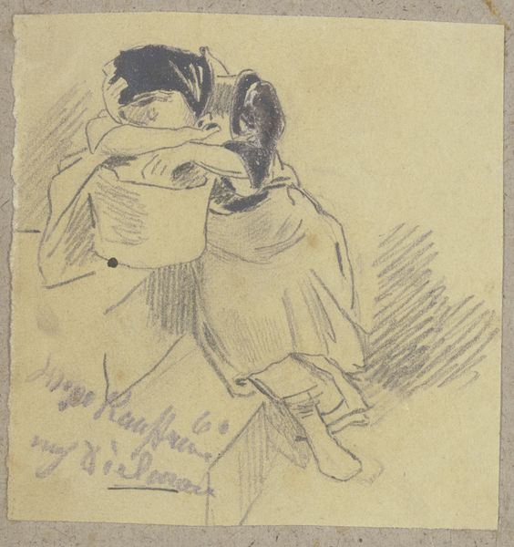 Curator: What a wonderfully intimate scene! We’re looking at “Sovende barn, Georgia” (“Sleeping Child, Georgia”), a pencil drawing on paper created in 1897 by Joakim Skovgaard. It is part of the collection at the SMK, the National Gallery of Denmark. Editor: There’s a hushed quality to it. It makes me want to whisper. You know that feeling of looking at something so serene that you're afraid to break the spell? Curator: Absolutely. And, if we look closely, we can see how the materiality of the work contributes to this effect. Skovgaard's deliberate choice of pencil and paper renders a quiet atmosphere through the build up of delicate mark-making, indicative of the slower and deliberate method of drawing. Editor: Yes, exactly! It is precisely that intimacy, almost tactile quality in those strokes. The rough texture contrasts well with the softness in their faces. It is really endearing. It also adds to the overall mood of this image...a simple study in texture creating an effect beyond words. Curator: Skovgaard clearly prioritised the observational study of form. Note the layering and cross-hatching; that contributes a great deal. How interesting that a scene seemingly so intimate, domestic, would hinge on the exploitation of a particular technique... one so deeply linked with materiality and method. Editor: You know, it makes me think about how artists use simple materials like pencil and paper to create something profoundly moving. The focus is so very concentrated on those soft, simple strokes, with the material making it seem more personal than the artwork. What's your final thought on it? Curator: I am left contemplating the way Skovgaard transformed humble materials into a poignant portrait of familial connection.