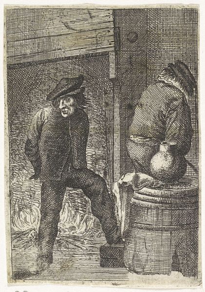 Frans van den Wijngaerde created this etching, Nacht, in the 17th century. In this period, Dutch art frequently depicted scenes of everyday life, often imbued with moral or social commentary. Wijngaerde's image, set at night, invites us to consider the world of the lower classes. What social interactions are taking place? What class is being depicted? The scene’s darkness obscures details, perhaps mirroring a lack of social visibility for these individuals. The act of lighting a pipe is central, suggesting camaraderie or perhaps illicit activities. To truly understand this image, we need to consult period sources: social histories, records of daily life, and even police blotters. Such research helps us decode the visual language and appreciate how artists like Wijngaerde engaged with the social structures of their time. The meaning of art isn't fixed; it's contingent on the context we bring to it.