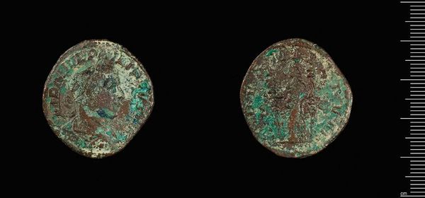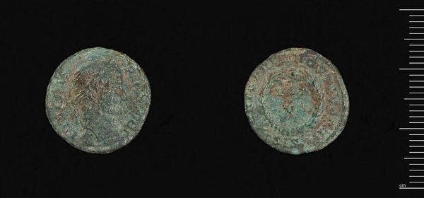 Curator: This is a coin of Diocletian, currently held in the Harvard Art Museums, weighing just 3.54 grams. The artist, of course, is Diocletian himself. Editor: Immediately, I notice the surface texture, heavily patinated and worn. The circular form, though, remains quite distinct. Curator: It speaks volumes about Roman society, doesn't it? Consider the labor involved in minting, the distribution networks, the very concept of imperial currency. Editor: Absolutely. Formally, the low relief compels the viewer to closely examine and imagine the original sharpness and symbolic import. Curator: These coins facilitated trade, paid soldiers, and broadcast the emperor's image far and wide. The material reality shaped the empire itself. Editor: Ultimately, this coin offers a powerful lens for understanding the relationship between symbolic representation and the aesthetics of power. Curator: Precisely. A small object that encapsulates so much of a complex historical period. Editor: Indeed, a microcosm of an empire.