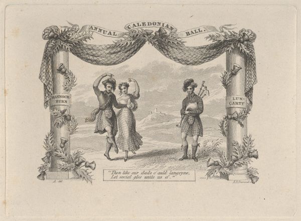 This "Marriage Certificate," made by J. Howard Iams, employs delicate watercolor to construct a scene within an elaborate architectural frame. The ornate details, featuring floral motifs and classical figures, create a visual harmony that speaks to the idealized union being celebrated. The structural elements of the frame command attention, creating a proscenium through which the marriage takes place. This theatrical framing positions the ceremony as a performance, drawing on established cultural codes of marriage as a public declaration. Note how Iams uses the classical architectural elements and figures to suggest a timeless, universal quality to the vows exchanged. Yet, the use of watercolor, a medium often associated with ephemerality, hints at the transient nature of such moments, challenging the notion of marriage as an immutable institution. The semiotic interplay between the grand architectural forms and the delicate medium invites viewers to consider the social constructs that underpin such ceremonies. Through these formal contrasts, Iams invites us to contemplate the shifting meanings of tradition itself.