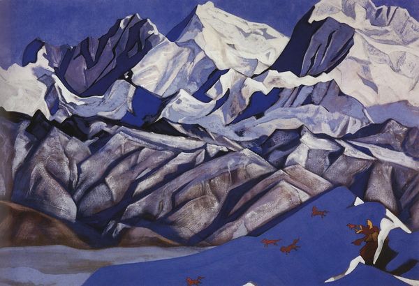 Nicholas Roerich painted "Covenant of Teacher" with what looks like tempera, achieving a luminous and otherworldly effect. The colours feel deliberately chosen, not quite naturalistic, but deeply felt. I'm drawn to the way Roerich layers these mountain ranges, one behind the other. The paint application is thin and matte, allowing the colours to speak. Look at how the blue of the mountains in the middle ground shifts and changes, creating a sense of depth and atmosphere. There’s a real simplicity here, a reduction of form to its essence. It reminds me of some of Marsden Hartley's landscapes, where he's simplifying and flattening the picture plane, pushing towards a symbolic representation of nature. Roerich seems less interested in the specific details of a place than in capturing its spiritual essence. In the end, it's the emotional resonance of the piece that stays with you.