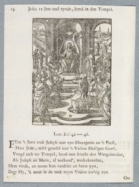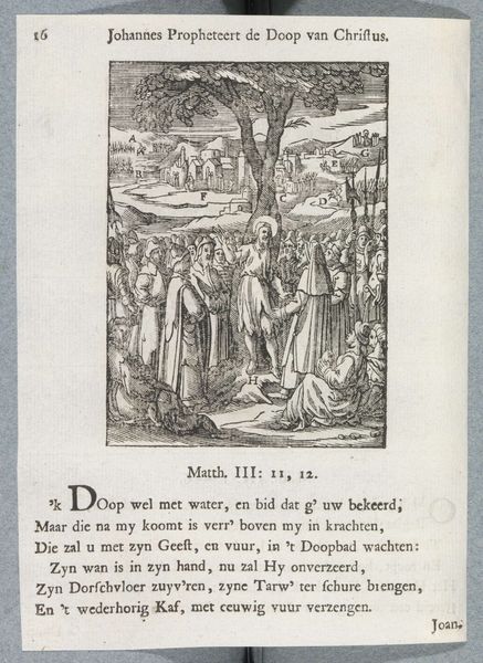 Curator: We're looking at an engraving today from the Rijksmuseum, titled "Tweede wonderbaarlijke spijziging," or "Second miraculous feeding," dating sometime between 1629 and 1740, attributed to Christoffel van Sichem II. Editor: My first thought? It's a fascinating, bustling scene, incredibly detailed given its size and medium, a symphony of black lines illustrating… well, what feels like a miracle in progress. There's an element of chaos contained within this frame. Curator: The engraving depicts the biblical story of the Feeding of the Five Thousand. Van Sichem was known for illustrating biblical scenes, often with a distinct graphic style reflective of the period. Prints like this would have been widely distributed, making religious narratives accessible to a broad audience. The political context in which this print emerges, during times of social stratification and struggle for religious representation, is essential in contextualizing its purpose. Editor: Exactly. Considering its distribution, one sees that this wasn't just art for art's sake, it was imagery shaping belief, solidifying power dynamics. It would reach the illiterate too, so they could visualize this act of generosity and consider their own material conditions. That visual translation to paper can have immense effects in reinforcing a particular structure of power. Curator: Note the artist’s decision to represent all these figures with very fine lines; consider how it all emphasizes the communal and miracle aspects of this account in Christian texts. Van Sichem used the very economical and available material in order to reproduce his interpretation of a relevant religious excerpt. Editor: Agreed. Thinking about today, what kind of images go "viral," how those images reinforce narratives, or how marginalized voices get represented – or silenced – is what comes to my mind looking at the historical impact this artwork could have made at the time. The artist, as well as the museum context, act as selectors which choose some historical facts instead of others; what isn't here is perhaps more meaningful than what is. Curator: Indeed. This print serves as a reminder of how art functioned as a vital communication tool, and a very impactful socio-political artifact that contributes to how religious ideas are represented to the public. Editor: A tiny engraving holding a mirror up to both faith and society. What a poignant reminder.