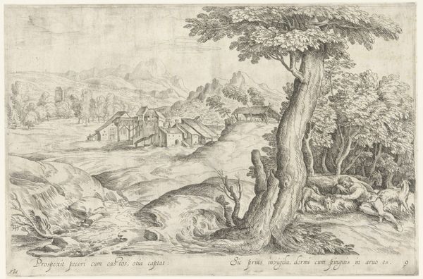 Editor: So, here we have "Landscape with a Shepherd and a Dog," an etching by Rembrandt van Rijn from 1653. It feels like a really intimate portrayal of the Dutch countryside, but there's also this slight… melancholy? How do you interpret this work? Curator: The melancholy you perceive is interesting. Consider Rembrandt's social context. During the Dutch Golden Age, landscapes became a potent expression of national identity and burgeoning mercantile power. However, they weren’t simply innocent depictions of the countryside. Think about who commissioned and consumed these images. Editor: So, you're saying it's not just about pretty scenery? Curator: Precisely. Look at the shepherd – a seemingly simple pastoral figure. But, isn’t he also representative of a certain social stratum, one whose existence was being both romanticized and reshaped by economic forces? Landscape art often masked these underlying socio-political dynamics. Notice how the church spire is rendered at nearly the same scale as the nearby trees. Does this visual analogy offer a clue to a relationship between those entities? Editor: That's a great point; I hadn't thought about how landscapes could also be making a subtle argument about social structures. So, this seemingly peaceful image is more complicated than it seems? Curator: Exactly. The print circulated among a specific audience, reinforcing certain ideas about Dutch identity and social order. Consider it not just as art, but as a cultural artifact. Editor: I guess I was focused on the beauty of the etching itself, the light and shadow. It’s fascinating to think about what stories the art tells about its historical context. Thank you. Curator: And thank you for helping me reflect. Considering public and private art consumption truly transforms the viewing experience.