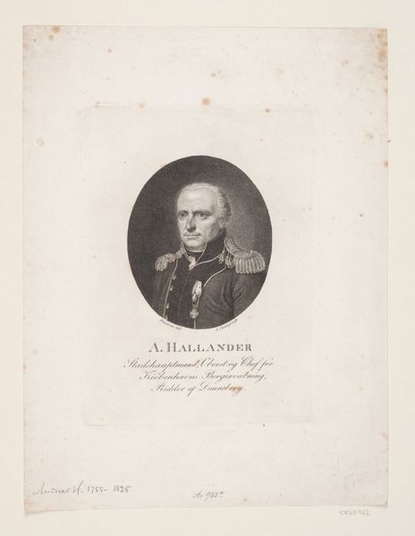 Curator: Here we have a piece entitled "Portret Magnus Gottfried Lichtwer." It is an engraving made sometime between 1783 and 1850 and is held at the Rijksmuseum. Editor: This portrait presents a rather reserved and dignified figure, encased in an octagonal border that adds a sense of formality. The fine lines of the engraving create a captivating level of detail. What strikes you about this work? Curator: Note how the engraver has used line weight and density to suggest volume and texture. Look closely at the rendering of the face, the controlled gradation of tone which brings forward some features while placing others into shadow. It is interesting, isn't it, how the figure occupies almost all the space in the defined, dark border? What does that spatial decision imply to you? Editor: That the figure is perhaps trapped, as if in amber? It feels like all available space has been deliberately filled. Does the style, and the octagonal framing device, align this work with Neoclassicism? Curator: Precisely. We see the classical interest in order and clarity in the crisp lines and the idealized depiction of the sitter, but also consider how this piece employs form and structure. Can you discern the relationship between form and content? The clarity of line mimics, in many ways, the clarity of thought prized during this era. Editor: I see now. It's all about control, in both the visual language and perhaps the subject's persona. Curator: Indeed. The medium reinforces the message. Editor: Thanks, I would never have looked so closely at that medium and what the sharp details convey about a message of control.