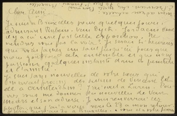 Henriëtte Roland Holst-van der Schalk wrote this letter to Willem Bogtman in 1943, probably with a fountain pen. Look at the way the ink bleeds slightly into the paper. This speaks to a kind of urgency, doesn't it? The words, though carefully formed, seem to spill out, eager to connect. I often think about the physicality of writing, how the pressure of the pen, the texture of the paper, all contribute to the meaning. See how the loops and curves of the handwriting create a kind of rhythm across the page. It reminds me of musical notation, each stroke a note in a personal melody. There's a vulnerability in this kind of direct communication, and I find that touching. As an artist I'm interested in the dialogue between intention and accident, the way the material itself shapes the final outcome. This reminds me a little of Cy Twombly's looser, more expressive text-based works, where writing becomes a form of drawing, a dance between language and line. And in the end, art, like a handwritten letter, is about connection, a reaching out across time and space.