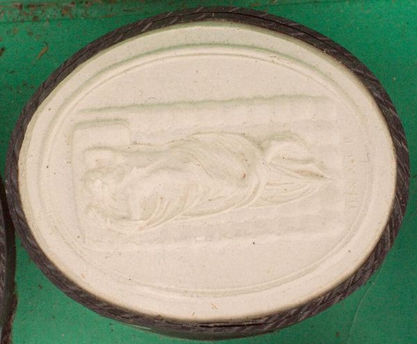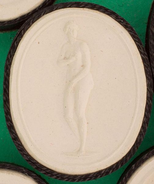 Curator: This small plaster relief, only a few centimeters across, presents a "Wounded Gladiator, after antiquity," attributed to the Pichler family. It's in the Harvard Art Museums collection. My first impression is just how tender it is; the figure's pose really conveys defeat. Editor: Absolutely. The figure speaks volumes about vulnerability and the human cost of spectacle. The oval shape, too, feels like a contained world of suffering. I see how the image echoes the stoicism of the ancient world, where even in defeat, there’s a certain dignity. Curator: It’s that dignity that gets me. Even copied, it reminds us of the gladiators as both warriors and humans, caught in a brutal system. The simple, almost stark, white plaster forces us to focus on the emotion, not the gore. Editor: Indeed. It's a distillation of a complex narrative. That starkness also pulls forward associations with funerary art, almost as if this gladiator is being memorialized. Curator: It becomes a universal symbol then, of any fallen hero, any victim of violence. Editor: Precisely. The piece connects us not just to the ancient world but to every age where individuals face overwhelming odds.