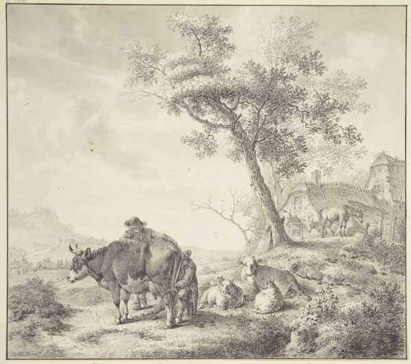 Jacob Weyer painted 'Cattle by a Watering Place', now in the SMK collection, during the Dutch Golden Age, a time when the Netherlands was a major economic and cultural power. Here, we find a pastoral scene, but it's not just about the pretty landscape. It's about the social structure of the time. The painting depicts farm workers, likely women, tending to cattle. This was a period when gender roles were clearly defined, and rural labor was often the domain of women and children. The cattle themselves were symbols of wealth and prosperity for the Dutch Republic. Weyer doesn't necessarily challenge these social norms. Instead, he captures a moment in the everyday lives of working people. There’s a certain calm and quietude, but also an undeniable sense of labor. The painting subtly highlights the class dynamics of the time. The figures are part of the landscape, essential to the Dutch economy, yet also somewhat anonymous. In its quiet way, 'Cattle by a Watering Place' invites us to reflect on the lives of those whose labor built the Dutch Golden Age.