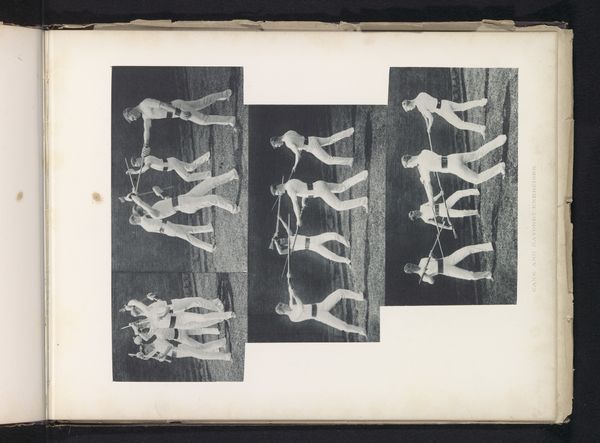 Eadweard Muybridge created this photographic study entitled "Animal Locomotion" between 1872 and 1885. The composition is structured as a grid, freezing moments of movement, with a figure vaulting over a pole. The monochrome tonality gives a sense of scientific detachment, encouraging a close analysis of form. Muybridge’s work fractures the continuous flow of motion into discrete, analyzable units. This dissection of movement mirrors the analytical spirit of the late 19th century, influenced by thinkers like Ernst Mach, who sought to understand the world by breaking it down into elementary sensations. The grid structure not only presents a sequence but also invites a comparative study of each pose, underscoring photography’s novel capacity to capture and categorize aspects of human movement. The seeming objectivity of Muybridge’s photographic method challenges traditional artistic representations of the body. It questions the role of the artist’s interpretation, replacing it with a supposedly unbiased mechanical gaze. This shift highlights the emerging tension between art and science, as new technologies began to redefine how we perceive and represent the world around us.