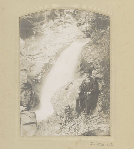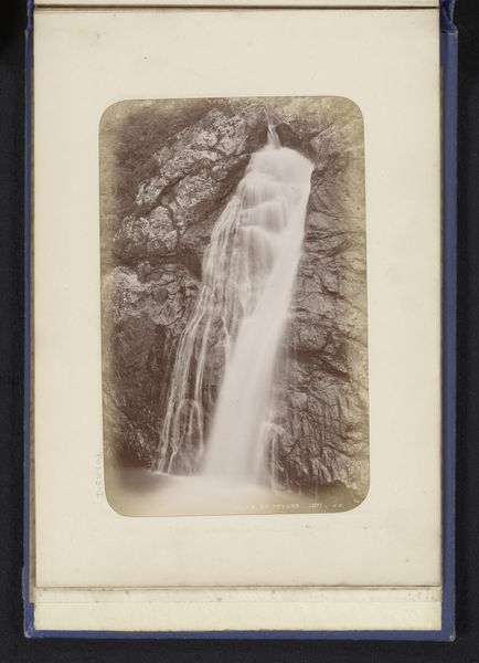 Curator: What a dramatic image! Florentin Charnaux's "Waterval in de Gorge du Trient in Zwitserland," taken around 1871, captures the raw power of nature. The composition draws the eye immediately to the cascading water. Editor: Yes, it has this almost ghostly, ethereal feel. The stark contrast between the dark, craggy rocks and the blurred, almost blinding, rush of water. It’s both captivating and a little unsettling. It feels so Romantic. Curator: Absolutely! This aesthetic aligns with the Romantic movement's fascination with nature's sublime power. Charnaux was working in a period where photography was still finding its feet as both an art form and a document. It evokes both awe and insignificance when we look upon it. Editor: And there’s an intriguing element of control present. Look at the vantage point that Charnaux chose! It makes the chasm seem like a contained performance or spectacle. Also, I wonder, given how difficult the terrain must have been to navigate with early photographic equipment, what statements he intended with his position and composition of this photo? It must have been so much of a challenge. Curator: That sense of staging, of framing nature, speaks to the complex relationship Europeans had with the natural world in the late 19th century. The sublime was being tamed, packaged into consumable experiences like tourism. Also, while seemingly neutral and realistic, remember that images like these bolstered colonial agendas. Dominance and possession go hand in hand, the artistic statement reinforces that through composition. Editor: Right, the narrative of conquering nature. How were photographs such as these displayed, for example, to influence public perception? They obviously influenced artistic choices later on, but how were photographic pieces framed, institutionally and socially? The sepia tones add another layer, like looking at something ancient or a collective memory. Curator: The tones create that sense of history and lend themselves well to reinforcing these social ideologies of grand domination, visually framing the history being presented in terms of those political powers. They could be displayed in homes, or galleries to showcase new photography works... this allowed viewers at the time to encounter such overwhelming scenery without even moving! Editor: So, even in its apparent realism, there’s a complex network of cultural meanings being conveyed. Curator: Precisely! This photograph is both a landscape and a cultural artifact ripe for unpacking its political agendas through understanding social trends and historical artistic choices. Editor: Seeing it now has added a whole new dimension to it for me! Curator: To me as well, I won’t ever see an innocent photograph of rushing water anymore, I will question it.