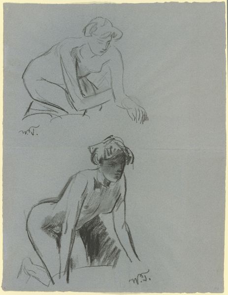 Editor: So, here we have Degas' "Study of a Singer," made sometime between 1878 and 1880. It's charcoal and pastel on paper, and what strikes me is how raw and immediate it feels, like we're catching a glimpse behind the scenes. What do you see when you look at this drawing? Curator: What interests me most is the evidence of process. The visible layering of charcoal and pastel tells us a great deal about Degas’s working method. Consider the costuming. How does it indicate the position of these working women, caught in the act of production for a consuming public? Editor: That's interesting, I hadn't thought about the labor involved. You see the drawing more as a document of work rather than a celebration of performance? Curator: Precisely! The fleeting nature of the Impressionist style, often associated with capturing a moment, can obscure the actual labor behind such moments. This "Study" lays bare the mechanics - the rehearsal, the physical exertion, and the materials required to produce the illusion of effortless artistry. What is the commodity that these women are helping to produce and sell? Editor: The performance, the music... entertainment? And the materials are, quite literally, the charcoal and pastel? Or perhaps the costumes? Curator: Think more broadly. What are the social conditions, the means of production, that allow for this sort of entertainment, and the creation of this image of that entertainment, to exist? Who benefits and how, at the expense of other people's material labor? How are the women compensated for their physical strain and work? Editor: It really changes my perspective on the drawing. It is not just an Impressionistic sketch of a singer; it reveals a whole network of social and material relations. I see it now, thanks! Curator: Indeed. By looking at the art’s production, the labor, and the societal structures underpinning it, we get a richer and more complex understanding.