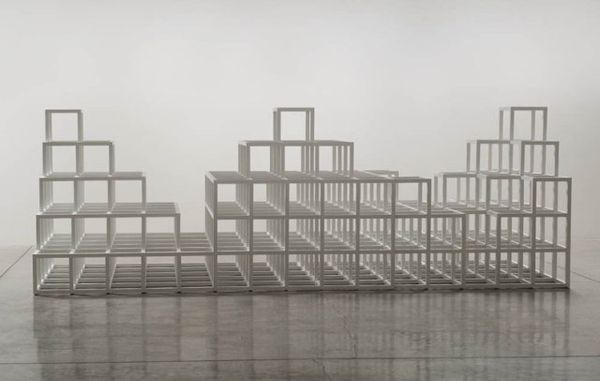 Mona Hatoum’s “Interior Landscape” presents an austere, almost clinical setting, arranged with found objects. The colour palette is muted, dominated by whites and greys, which creates a sense of emptiness and invites us to look closer at the subtle textures and arrangements. The rusted iron bed frame, with its peeling paint, contrasts with the smooth surfaces of the surrounding walls and floor. This juxtaposition is really interesting to me. It is as if the artist is reminding us that even the most functional objects have a history, a past life marked by wear and tear. Look at the way the light catches the edges of the bed frame, revealing the layers of paint beneath. The peeling paint is kind of like a metaphor for the process of uncovering hidden narratives and experiences. Hatoum’s work often explores themes of displacement and identity, and this piece is reminiscent of the stark interiors found in the work of Louise Bourgeois. Like Bourgeois, Hatoum uses found objects to create a sense of unease and discomfort. The objects become like props in a theatrical performance, inviting us to contemplate the complexities of human experience. Ultimately, Hatoum’s “Interior Landscape” invites us to see the world in new ways.