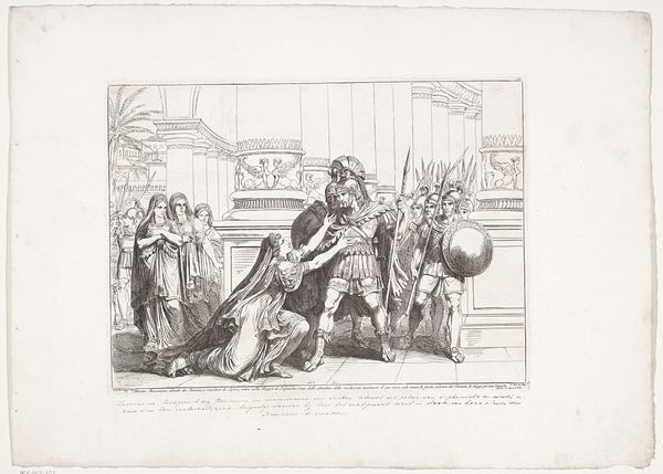Bartolomeo Pinelli created this print, depicting "Lucius Cornelius Sulla laat Granius voor zich brengen." Sulla, the Roman dictator, reclines regally, while Granius is brought before him, a scene ripe with symbolic weight. The lion motif adorning Sulla's couch is not merely decorative. Since antiquity, the lion has symbolized power, courage, and dominion. Yet, it also carries an ambivalent charge. In Mesopotamian art, lions were associated with royalty but also with the untamed, primal forces of nature. This duality echoes in how Sulla embodies both the order of Roman law and the brutal exercise of autocratic power. The act of presenting a figure before a ruler is a recurring motif in art across cultures. Think of scenes of supplication before pharaohs in ancient Egypt or the presentation of tribute to kings in Renaissance paintings. The repetition of this scene across time reveals a deep-seated human preoccupation with power dynamics, justice, and the fraught relationship between the individual and the state. The tension is palpable, engaging us on a subconscious level. The act of Sulla judging Granius taps into our own anxieties about authority, fairness, and the precariousness of human fate. This image is a potent reminder of how symbols and gestures can transcend time, carrying echoes of past dramas into our present consciousness.