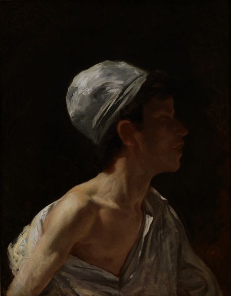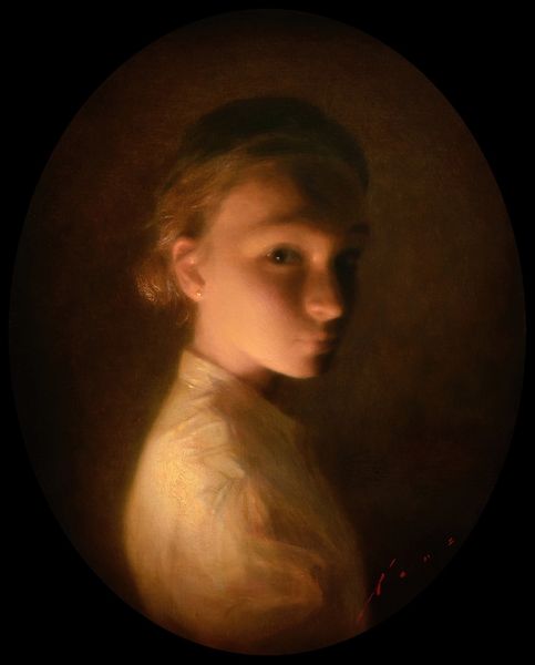 Editor: So, this is Rembrandt's "Portrait of a Young Woman," thought to be Hendrickje Stoffels, painted sometime in the 1660s or 70s. It’s an oil painting on wood. I find her gaze so direct and…unflinching, almost modern in its realism. What do you see in this piece, especially knowing its context? Art Historian: That gaze is key. Rembrandt often used light to explore interiority, and in this portrait, it spotlights Hendrickje in a way that feels both intimate and defiant, wouldn’t you agree? Remember, during the Dutch Golden Age, societal roles for women were strictly defined. The wealthy class became dominant. So, I wonder about her expression: does it hint at her understanding of these constraints? Was this portrait, then, an attempt to assert her individuality and presence? Editor: That's fascinating! I hadn't considered it as an act of defiance. I was just struck by the apparent lack of idealization; she feels so…real. Art Historian: Exactly! And Rembrandt, throughout his career, seemed invested in representing individuals as they truly were, moving beyond the era's conventional glorification of wealth and status. The very brushstrokes are a part of that expression. What do you see in them? How would you describe the style? Editor: They're quite loose, right? And the dark background throws the focus onto her face and hands, and... her body is sort of obscured, almost. Maybe he wanted us to concentrate on her intellect? Art Historian: Perhaps. Or it could be highlighting the areas of her body she used for creativity or physical, manual labour: not labour from some servitude, but as a marker of independent character, where all areas in the light are essential to what makes this particular human. Editor: That gives me a lot to consider, thank you. It's like looking at it through a completely different lens – considering not just *what* is painted but *why* and *who* is it painted *for*. Art Historian: Precisely. And who the woman really was and what she represents matters so we appreciate better what such image aimed to offer. It helps us to expand how we approach to art.