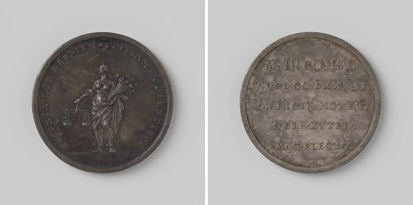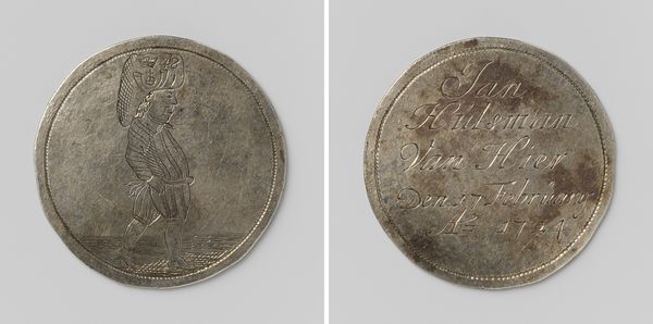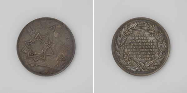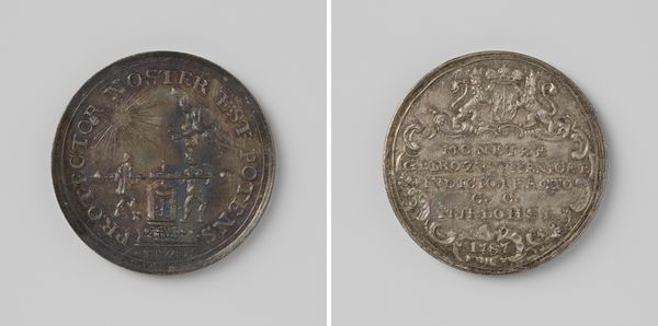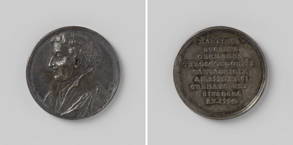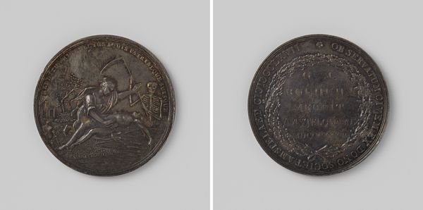Editor: We're looking at a bronze medal from 1806 titled "Overlijden van Jan Nieuwenhuyzen te Monnikendam," or "Death of Jan Nieuwenhuyzen at Monnikendam," marking the passing of the founder of the Society for Public Welfare. It's at the Rijksmuseum. There's something very formal, very stoic, about the portrait… like a Roman emperor on a coin, almost. What grabs your attention when you look at it? Curator: It whispers of civic duty and enlightenment ideals, doesn’t it? I am struck by the tactile nature of it - cold, solid, enduring bronze. It feels like they wished to capture the very *essence* of the man. Notice how the inscription acts as a little biography; it grounds him in time and place, like little seeds of memory planted on the metal’s surface. What kind of story might you spin from such a solid, stoic surface? Editor: Maybe the story of how societies used objects like these to publicly remember prominent figures, something akin to social media in our day, maybe? Almost like a 'like' for societal contribution? Curator: Precisely! Before mass media, these medals were crucial in shaping public memory. The very act of holding it connects us—across centuries—to the community Nieuwenhuyzen fostered. Don’t you feel you can almost feel the weight of expectation and social responsibility pressed into this little thing? It’s history condensed, isn’t it? Editor: Definitely, there is much more weight here than I thought possible in an object this size. It’s remarkable how such a simple medium was employed for something very similar to what we're doing today—sharing stories of societal leaders to encourage thoughtful citizenry. Curator: Yes, perhaps objects aren't really that mute after all.