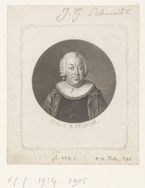 Editor: Here we have a print from 1881, Jean Baptiste Pierre Michiels’s "Portret van Christoffel Plantijn," housed at the Rijksmuseum. It's a portrait in delicate lines, and the subject seems quite formal. What can you tell me about it? Curator: This print provides an interesting lens through which to consider the enduring influence of individuals and the construction of historical memory. Plantijn was a hugely significant printer and publisher in the 16th century. Michiels created this print centuries later, suggesting a desire to revisit and perhaps solidify Plantijn’s legacy within a specific cultural moment, likely linked to notions of national or cultural identity. Editor: So the image isn’t just *of* Plantijn, but also *about* how people viewed him later on? Curator: Exactly. Ask yourself: Why reproduce Plantijn's image in the late 19th century? What purpose does this image serve within the cultural and political landscape of the time? The formal, academic style might suggest an attempt to present Plantijn as a figure of established importance and respectability, worthy of national admiration. Consider also the role of institutions like the Rijksmuseum in shaping these perceptions through collecting and displaying such works. Editor: That makes a lot of sense. It really pushes me to think about who decides which figures are remembered and how. Curator: Indeed. It's not just about the subject, but the whole infrastructure that supports the subject's enduring fame. It raises questions about artistic agency within the museum context as well as broader historical narratives. What do you make of its presentation? Editor: I hadn't considered the political dimension. It makes me wonder about other seemingly simple portraits I've seen. Curator: Reflecting on how public institutions actively participate in shaping societal memory offers an interesting perspective for evaluating any artwork within and beyond gallery spaces.