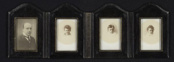 Editor: Here we have, “Portefeuille met vier portretten van een onbekende vrouw,” an albumen print dating from between 1865 and 1896 by Pieter Voet. I find it interesting that it depicts what looks like one woman in multiple stages of life, almost like a study. What's your interpretation? Curator: What I find striking is how the framing and presentation speak volumes about 19th-century notions of identity, privacy, and gender. Why do you think these photographs were compiled and kept in such a manner? What kind of statement, about both intimacy and status, might they make? Editor: I imagine it was a keepsake for a loved one, and perhaps each portrait captures her growing agency as a woman in that era? I wonder who chose these specific images and what guided their selection. Curator: Precisely. Consider the constraints and expectations placed upon women during this period. Photography was still relatively new, offering a specific kind of representation, but even these portraits feel mediated by the photographer’s gaze, even with her presumed participation. Notice how, as you move through the photographs, she appears to be claiming greater confidence. Is that something you also see? Editor: Yes, I think so. You can observe it especially in her posture, as if with time she felt increasingly comfortable in her skin, empowered, which she communicates through body language and clothing. Curator: So, the act of commissioning, posing for, and then carefully curating these portraits within a "portefeuille," wasn't just personal, but became an act of subtle self-assertion within the social context. These visual narratives were carefully constructed! Editor: I had not thought of it that way, but framing it in light of women's restricted social roles, this is a statement of subtle defiance and self-authorship. Thanks! Curator: And thank you; thinking about who controls representation, then and now, provides a vital lens for understanding art.