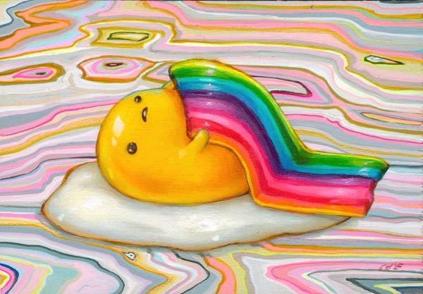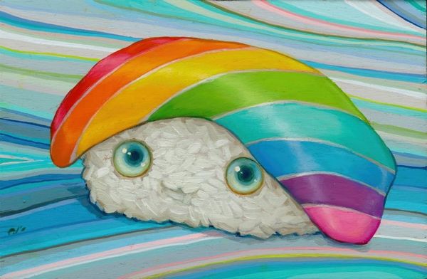 Editor: This is Camilla d'Errico's "Seabuns" from 2017, a watercolour painting that blends realism and surrealism in a whimsical way. It’s so…gentle! The colors are pastel, and the subject matter is unexpectedly cute. What do you see in this piece? Curator: I see a subversion of expectations around cuteness, one deeply embedded within societal narratives. D’Errico often explores the tension between surface appearances and underlying realities. This creature, superficially adorable, sits within an environment that feels both dreamlike and potentially fragile, given its watercolor medium. The 'Seabun' becomes a metaphor for how we project innocence and vulnerability, onto beings and perhaps, onto broader ecosystems. What do you make of its rainbow tail? Editor: The rainbow tail seems like a pretty straightforward symbol of hope and diversity. Maybe a little cliché? Curator: Cliché, perhaps, but effective. Think about the cultural context: the increased visibility and politicization of LGBTQ+ identities, coupled with environmental anxieties. This tail becomes more than just color; it’s a flag, a declaration. But whose hope is this, and whose diversity is being centered? Is this a flattening of intersectional experiences into a singular aesthetic? Editor: I hadn't thought of it that way. It challenges the simple message and makes me consider how symbols can be used in different ways, sometimes even superficially. Curator: Precisely. And this complexity is where d'Errico's work truly engages us. It provokes a conversation far beyond the immediate, charming aesthetic. It makes us consider power, representation, and responsibility within visual culture. Editor: That makes me look at the painting completely differently, there’s way more than meets the eye. Thanks for helping me to consider a different approach! Curator: My pleasure. Keep questioning, keep exploring. Art history is a constantly evolving conversation.