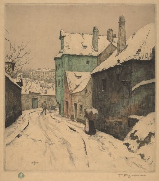 Willem Witsen created this etching of snow-covered houses in Ede during the late 19th or early 20th century. It’s a scene of quiet domesticity, rendered in a style that reflects the artistic currents of its time, but how might we understand the image in its wider context? Witsen was part of a group of Dutch artists who reacted against the prevailing academic style, turning instead to scenes of everyday life. Here, the snow lends a certain stillness, emphasizing the simple structures of the houses and the solitary figure in the doorway. The etching medium itself, with its emphasis on line and tone, was increasingly popular among artists seeking a more direct and democratic form of expression, outside of the traditional art establishment. Was Witsen making a statement about the value of the ordinary, in opposition to the grand narratives of academic painting? To understand the social implications of Witsen’s work, we might look to period writings on Dutch art and culture, exhibition reviews, or even census records to learn about the lives of people in Ede. Only then, can we start to appreciate the painting’s place in a broader social and institutional history.