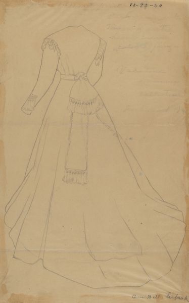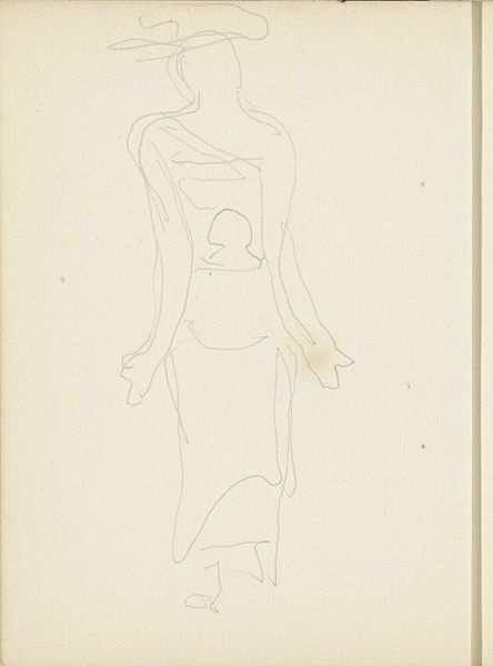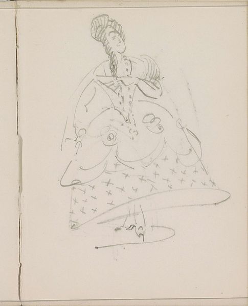 Théodore Rousseau sketched this study of a woman in walking costume using graphite on paper. Note the attire—the elaborate bonnet and full skirt. Clothing was a powerful signifier of social status, and the act of walking, especially for women, was a carefully managed performance. The image evokes a sense of restrained movement. Consider, though, how even in motion, the woman's form is contained, almost imprisoned, by the fashion of her era. This confinement is a recurring motif in art history; you may recall similar constraints in paintings of women from earlier periods, reflecting societal expectations and control. This motif, seen across different eras, becomes an exploration of freedom versus restriction. The psychological weight of such expectations might unconsciously influence the artist's and our interpretation of the work. Such echoes across time remind us that symbols evolve, yet carry a persistent charge, reappearing in new forms and contexts.