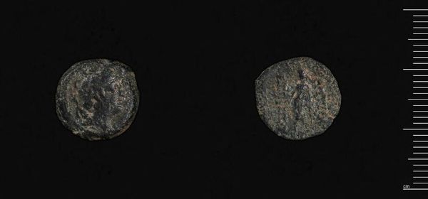Editor: This is a coin of Antiochos III, the Great of Syria. It’s a small, worn piece, but it feels weighty with history. What stories do you think it holds? Curator: This coin represents more than just currency; it embodies power and the assertion of cultural identity within the Seleucid Empire. Consider Antiochos III's epithet, "the Great." What does that signify in terms of his self-perception and the image he wished to project? Editor: It feels like a statement of dominance, especially in a world undergoing massive shifts in power. Curator: Precisely. And how does this coin function as a form of propaganda, circulating his image and, by extension, his authority throughout his vast territories? Think about the implications of a single, standardized image shaping perceptions of a ruler. Editor: It’s a portable representation of power. I hadn’t considered it in those terms before! Curator: Exactly. This small object becomes a crucial tool in understanding the complexities of identity, power, and representation in the ancient world. Editor: That’s really broadened my perspective on historical artifacts. Thanks! Curator: The past speaks, if we listen critically to its relics.