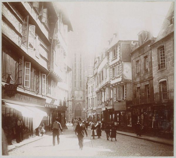 This silvery gelatin printing out paper, by Delizy, captures a street in Quimper, France with the Saint-Corentin cathedral in the background. The print has a dreamy, almost ethereal quality. It's sepia-toned, which gives it that vintage feel, like a memory fading into the past. I'm drawn to the way the light filters through the buildings, creating a soft, diffused effect, almost like looking through a veil. Look at the texture of the buildings and the cobblestone street; you can almost feel the age and history embedded in those surfaces. The sepia tones add to that sense of nostalgia, making the scene feel both familiar and distant. There is something so delicate about this image. It reminds me a little bit of Atget, doesn't it? Both are conjuring something, a memory, a place, a feeling. It's like a whisper from another time.