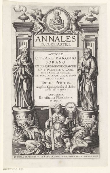 This print, *Titelprent voor Miracula et Beneficia SS. Rosario*, was made in 1610 in Antwerp, by Theodoor Galle. It's an engraving, a printmaking process where lines are incised into a metal plate, which is then inked and pressed onto paper. Engraving like this was a highly skilled, laborious process. Each line had to be carefully cut, demanding precision and control. Look closely, and you can see the distinct quality of each stroke, the way they build up to create tone and texture. The density of the lines give the image depth, while the stark contrast emphasizes the graphic nature of the print. Prints like this weren't just art objects; they were a means of disseminating information, and devotional imagery in this case. The printing press, a technology of mass production, allowed for images and ideas to be spread far and wide, contributing to the religious and political landscape of the time. So while this print may seem small and unassuming, it's a testament to the power of craft and technology in shaping our world.