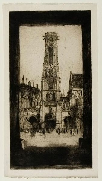 This is Joseph Pennell’s etching of the Transept, created sometime between the late 19th and early 20th century. Pennell was an American expatriate artist, known for his prints of urban landscapes and architecture, with a fascination for the monumental structures of European cities. Pennell’s choice of subject matter aligns with the late 19th-century interest in the Gothic style and the social role of the church. The transept, the transverse part of the church that crosses the nave, takes center stage, and becomes a symbol of religious authority in a changing urban landscape. France, where this image was made, was in the midst of intense secularization in the late 19th century, with public debates regarding the separation of church and state. Pennell’s print can thus be interpreted as part of a nostalgic turn to religious institutions during a period of social and political change. To truly understand Pennell's image, we might consult period guidebooks, architectural surveys, and religious publications, tracing the ways the Gothic cathedrals were being reimagined in the social imagination of the time.