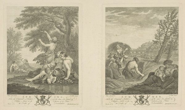 This anonymous engraving, titled "Omnia vincit Amor," captures a classical scene, presenting a powerful allegory of love's dominion. On the left, Cupid triumphs over Pan, the rustic god of the wild, whose pipes lie discarded at his feet. This evokes the subjugation of primal instincts to love's influence. We see a parallel in Renaissance paintings, where Cupid disarms Mars, the god of war, symbolizing love's power to pacify even the most bellicose. Here, the shepherd's staff lying in the foreground reminds us of pastoral scenes where love blooms in idyllic simplicity, contrasting with the unbridled nature of Pan. The embracing lovers, in turn, embody the fulfillment of love's promise. This image taps into a deep-seated human desire for harmony, love's triumph, which transcends time, resurfacing across history, art, and the collective psyche.