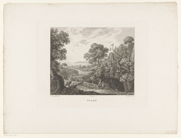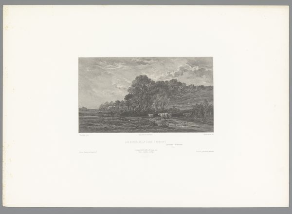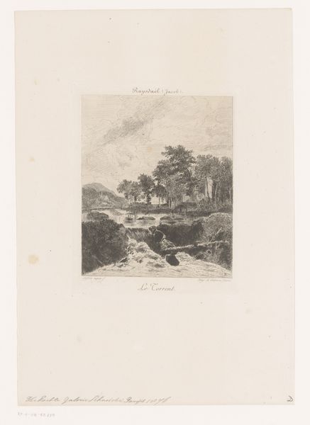 Curator: This is "Huizen met strooien daken in een landschap" or "Houses with straw roofs in a landscape," created by Maxime Lalanne in 1873. It's a beautifully rendered etching, currently held at the Rijksmuseum. Editor: The immediate feel is almost hauntingly serene. The tones are so delicate, the texture giving these humble dwellings a ghostly presence on the land. What a contrast, ephemeral permanence if you will. Curator: It's realism, certainly, but it's a very romantic take on it. Lalanne was exceptionally gifted at capturing light and shadow with such simple means. You can feel the dampness in the air, and even hear the quiet rustling of straw. Editor: The thatched roof is almost like an embrace, protective yet decaying, you can almost sense a memory attached to those architectural forms. Do you feel there's something melancholic in those dwellings? Curator: There is a nostalgia, yes, a reflection of the transience of human existence compared to the timelessness of nature. Straw, of course, has always symbolized both prosperity, and something ephemeral, a warning to be ready. That's why it’s burned in effigy, and a favorite bed of those who go unnamed. Editor: An intriguing parallel indeed, evoking symbols across the epochs. So tell me, what makes this piece truly special? Curator: Beyond the technical skill, it’s the artist's ability to imbue a simple genre scene with layers of emotion and meaning, urging us to reconsider the simplicity of what's right in front of us. It asks us, what meaning do we find in such structures? Editor: Makes me think how visual symbols act as cultural triggers, holding the power to carry collective emotions and narratives throughout time. Curator: Precisely! It's more than just a pretty landscape. It's a snapshot of human condition frozen in time through the universal language of etching. Editor: Leaving one wondering whether it whispers stories of endurance, survival, and those long forgotten tales nested within the haystacks of time. Curator: Beautifully said. Indeed, "Huizen met strooien daken in een landschap," invites us to contemplate the silent echoes residing within the commonplace.