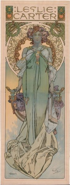 Alphonse Mucha created this menu card for Moët & Chandon, employing the sinuous lines of the Art Nouveau style. The work reflects the late 19th-century obsession with idealized femininity and commercial aesthetics. This aesthetic emerged during a time of significant social change, as women were fighting for suffrage and entering the workforce. Mucha's work, while seemingly celebrating women, often confined them to decorative roles, reinforcing traditional gender norms. The flowing lines and organic motifs create a dreamlike atmosphere, inviting viewers into a world of luxury and indulgence. However, the image of a woman adorned with grapes also evokes classical associations with Bacchus, the god of wine, thereby intertwining female beauty with the pleasures of consumption. This connection between femininity and consumerism raises questions about the commodification of women in advertising and the subtle ways in which power dynamics are embedded in visual culture. Ultimately, this menu card invites us to consider the complex interplay between art, commerce, and gender in shaping our perceptions and desires.