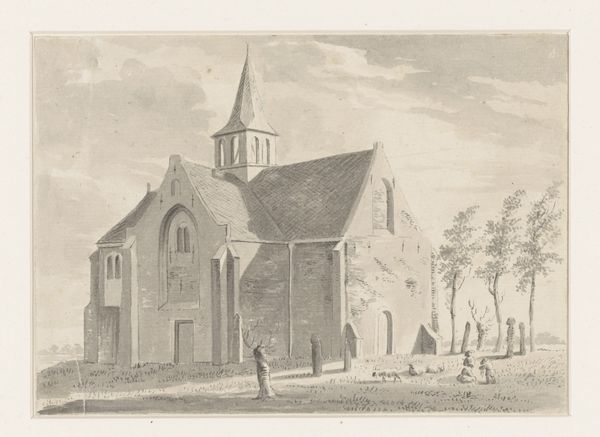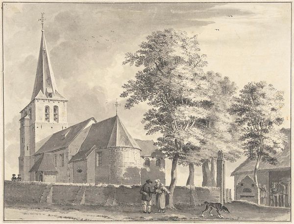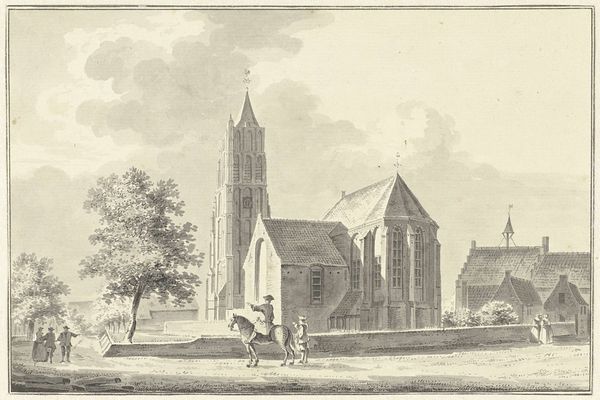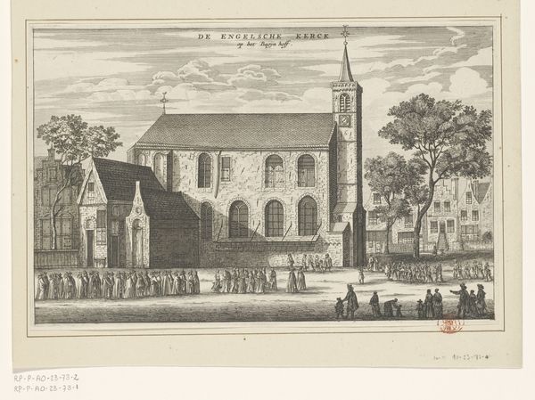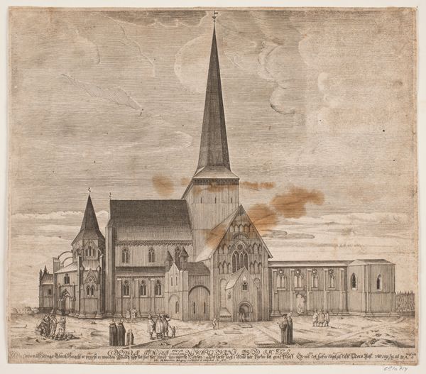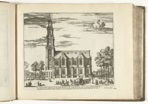 This is Jacob van Meurs' "View of the Church at Sloterdijk," made with etching. At first glance, the composition, dominated by the church's imposing structure, evokes a sense of stability, achieved by the precise lines of the architecture and the balanced distribution of figures in the foreground. However, the scene is more complex. The receding lines of sight introduce spatial depth and play with perspective. The church, depicted in meticulous detail, is contrasted by the lively informality of the figures scattered around, suggesting an integration of the sacred and the secular. Van Meurs uses line to map the social structure of the town, blending the architecture and the people who inhabit the space. By drawing our eye upwards, the church subtly imposes its structure on the community. Yet, in this tension between monumentality and everyday life, the church and town are bound together.