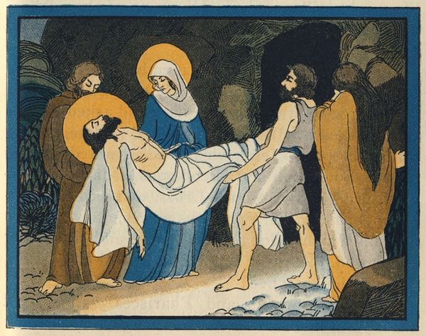 Curator: Jesus Before Caiphas. This print, dated to 1940, seems steeped in narrative weight, doesn't it? A palpable sense of dread permeates it. Editor: Yes, an intriguing composition—naive, almost childlike, and rendered through printmaking? The layers upon layers would surely have necessitated time and labor. One must consider the economy within which the print was produced. Curator: Absolutely, the historical and material circumstances are essential to understanding. I can't help but fixate on the light; the glow emanating from behind Jesus suggests a profound spiritual significance—like a candle refusing to be snuffed out, even amidst looming darkness. Editor: Notice how all figures, despite the painterly effects of their robes and garments, are starkly rendered using simplified, unmodulated printing techniques. The robes are so abstracted as to almost seem modular in form. There is also extensive use of pattern and repetition within the print’s pictorial field, indicative of industrialized print techniques. Curator: Exactly! It's as though the artist aimed to highlight that contrast – a struggle between a divine idea and very earthbound forces. What do you think they wanted to say with their aesthetic choice, using these more standardized techniques? Editor: It speaks to wider questions of dissemination and accessibility. Making sacred imagery with ordinary materials democratizes what may have otherwise remained a high art production for elite, clerical subjects only. Curator: Well put! Considering how art can be both reflective and revolutionary—could this artist have envisioned his work in this piece offering strength through readily available imagery to the masses? Editor: Such art could certainly serve devotional and didactic purposes. And let's be realistic about religious commissions during that period; they offered means for production of print shops and opportunities of wage labor at all levels, for women and men! Curator: This image speaks in whispers that, upon close listening, speak with astounding vigor. To contemplate faith not merely as piety, but a dynamic, living thing! Editor: Indeed. This image challenges us to reconsider not only history, but art's vital, and often undervalued role in history’s grand material sweep.