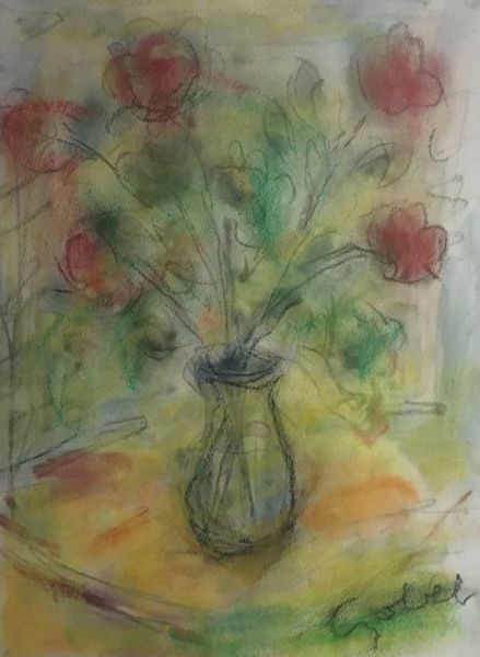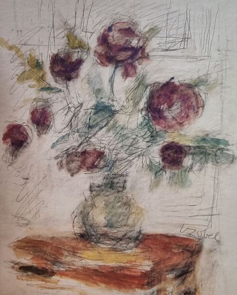 Curator: Here we have "Asztali Csendélet," which translates to "Still Life with Table," attributed to the Hungarian artist Béla Czóbel. It’s thought to be made with charcoal, possibly with additions of watercolor. Editor: The immediacy of the charcoal marks really grabs me. There's a certain fragility and transience in the blurry depiction that sets it apart from typical still lifes. Curator: Yes, it really showcases Czóbel’s expressionist leanings. One can imagine the artist rapidly sketching, capturing not just the appearance, but the very essence of the subject. Do you notice the visible texture of the paper itself? Editor: I do. The choice of the rough, almost raw surface is critical. It adds another layer to this expressionist sensibility. This almost deconstructed rendering avoids perfection. It invites contemplation rather than passive observation. We must also recognize the context that would motivate such output and the way it would be interpreted by the culture of its origin. Curator: Indeed. One must also ask, what other available materials might Czóbel have selected and why he would choose to invest his labor with charcoal over other forms? Furthermore, the ambiguity around dating encourages us to ponder its place within Czóbel’s wider output. What was the art market and its conditions that this was presented in? Editor: Given that the exact date of creation remains unknown, analyzing this from a social historical lens poses certain challenges. Was this made during Czóbel’s time in the Fauvist circles of Paris or later, reflecting on past encounters? It might show the transition through different cultural contexts and the availability of his market, depending on when he produced it. The political currents of the time certainly also influenced artistic expressions like Czóbel’s. Curator: Precisely. I see how you’re piecing together its potential meanings. What’s compelling is that it transcends simple representation. It challenges viewers to see beauty in ephemerality, in the mundane objects made remarkable through artistic labour. Editor: Definitely, seeing the broader spectrum, from materiality to Czobel's reception adds greater depth. It gives the drawing meaning in today's art market as well as its origin. Curator: Very insightful; understanding his chosen techniques offers some great historical viewpoints, don't you think?