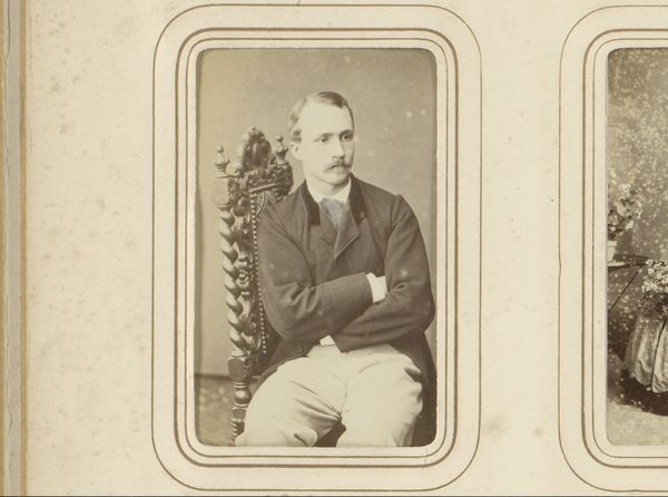 Editor: So, this is "Portret van een man met baard en hoed," which translates to "Portrait of a Man with Beard and Hat." It’s a 19th-century albumen print photograph from around 1860 to 1890, attributed to Schumann & Heinelt. What strikes me is how staged and formal it feels, typical of photography from that time. How do you interpret this work within its historical context? Curator: Absolutely. This image is steeped in the social conventions of the 19th century. Photography, still relatively new, offered a way to capture and project a specific social identity. The man’s pose, his clothing – the suit, the pocket watch chain – and even the placement of his hat speak to bourgeois respectability. Consider the sitter’s gaze, just slightly averted, which perhaps conveys a certain social distance or contemplation. It begs the question: What narratives of class and gender are embedded in such controlled depictions of self? Editor: That’s fascinating. It’s interesting to consider how he's choosing to present himself. Do you think the photographers, Schumann & Heinelt, might have played a role in constructing that image? Curator: Without a doubt. Early photography studios weren't just documenting reality, they were actively shaping it. Think about the power dynamics at play. The subject, likely a paying customer, surrenders a degree of control to the photographer. The backdrop, the props, even the subtle direction of the pose – all these elements contributed to a constructed representation. To truly read this portrait, we need to consider the agency of both the sitter and the photographer in the creation of this carefully cultivated image. How do you think it contrasts to contemporary selfies and portraiture? Editor: That gives me a lot to consider. Thinking about agency and representation helps connect it to the present in interesting ways. Curator: Exactly, recognizing those constructed narratives can teach us about contemporary identity and the way we create and understand each other through visual mediums.