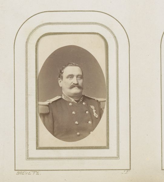 Editor: Here we have "Portret van Louis Faidherbe," a photograph from 1870 by an anonymous artist. The sepia tones lend the image an air of formality, and I’m struck by the subject's imposing military attire. What does this portrait tell us about its context? Curator: That’s a great observation. Faidherbe was a key figure in French colonial history. Understanding that context shifts our interpretation of the image. We see not just a military man, but a representation of power, authority, and the structures of colonialism. Consider where this image might have been displayed. Editor: Probably in a place designed to assert power. Maybe in government buildings or even in schools to promote a certain vision of French dominance. Curator: Precisely. The photograph then becomes a tool, reinforcing Faidherbe's role in maintaining that power. Think about the artistic choices too – the pose, the framing – how do those contribute? Editor: The framing and upward gaze give him an air of importance and aspiration, but this is a constructed image intended to promote colonial ideals. Are we meant to admire or perhaps fear him? Curator: Both, perhaps. And considering its circulation, whose gaze was this image intended to capture primarily? The colonized, the colonizers, or both? Understanding that gives us a deeper appreciation of the politics of this photograph. Editor: It's amazing how much is embedded within this photograph, and that images are part of a larger socio-political machine. I'll definitely consider the social contexts of images much more now!