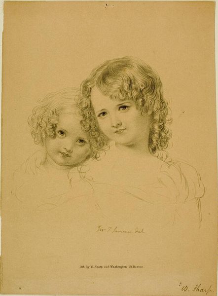 Editor: This is "Portrait of a Young Girl and Boy" by William Valentine Schevill. The pastel medium gives it a soft, dreamlike quality. What symbols do you see in this work? Curator: Pastel lends itself to intimacy. Note how the children are posed, shoulder to shoulder, almost pressed together. This closeness speaks to a cultural ideal of familial unity. Do you observe anything in their gaze? Editor: They both seem to be staring directly at the viewer, but they don't seem very happy about it. Curator: Precisely. Their direct, almost challenging gazes, coupled with the lack of playful smiles common in children’s portraits, hint at a deeper psychological complexity. Perhaps a weight of expectation, a cultural memory of duty? Editor: So, more than just a pretty picture, it's a symbol of their place in society? Curator: Indeed. The artist invites us to contemplate the social roles these children will inevitably embody. It makes me wonder about the cultural values of the family. Editor: That's a much richer interpretation than I first imagined!